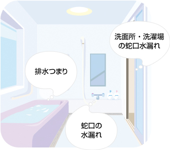 シャワーヘッドや蛇口の水漏れをはじめ、お風呂も水回りのトラブルの可能性がいっぱいです。